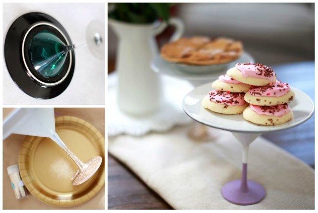 21/ Présentez vos pâtisseries sur un plateau à desserts fait maison avec une assiette et un verre de cocktail