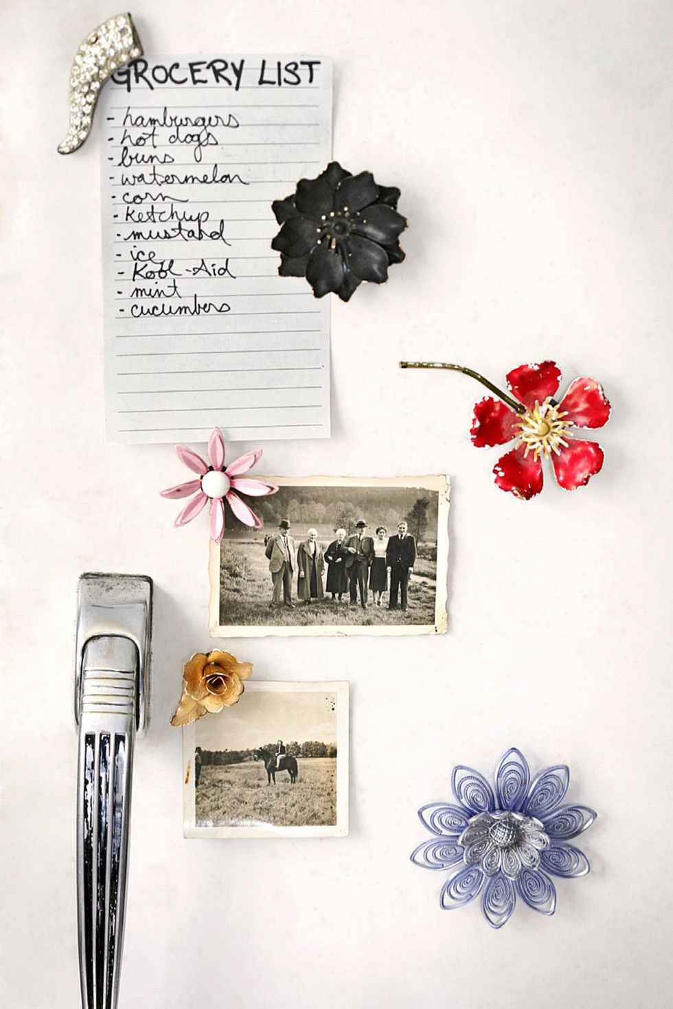 Au lieu de les laisser prendre la poussière dans votre tiroir, vous pouvez réutiliser vos broches en aimants ! Détachez l’épingle avec une pince, fixez à la place un aimant avec de la colle forte et laissez sécher durant la nuit.