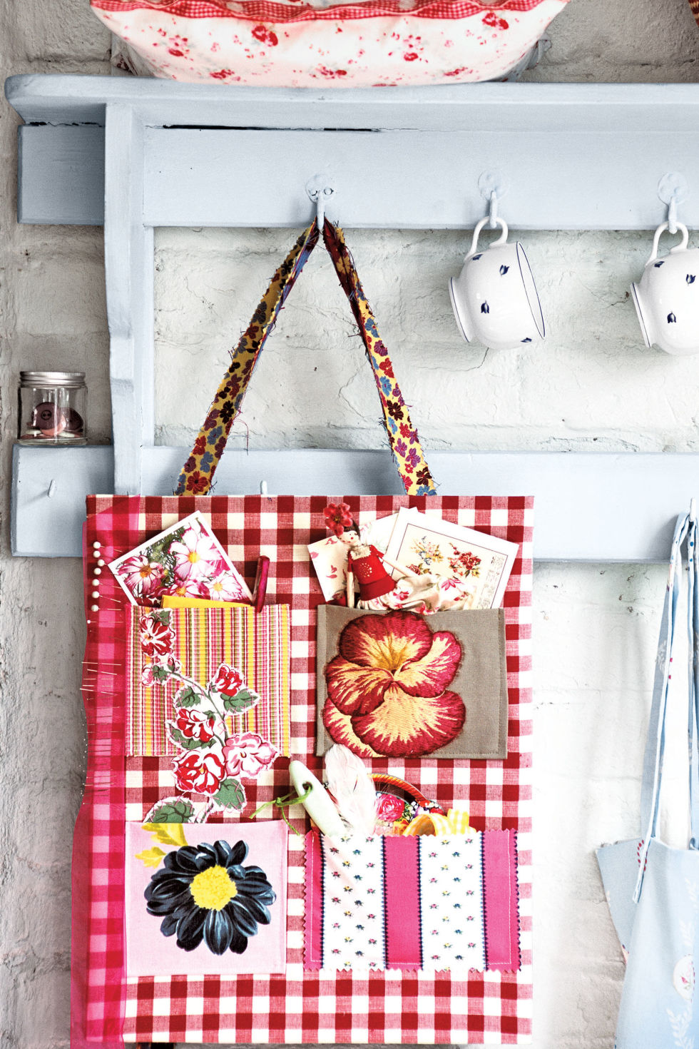 Si vous vous débrouillez assez bien en couture, pourquoi ne pas essayer de donner une seconde vie à un vieux sac ? Créez simplement 4 poches de la même taille avec des motifs de fleurs différents !