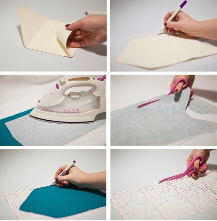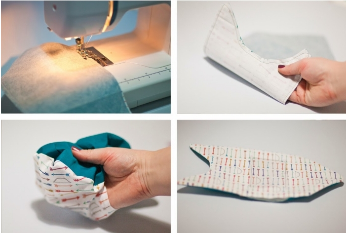 6) Superposez les deux morceaux de tissu, repassez-les ensemble et cousez-les.