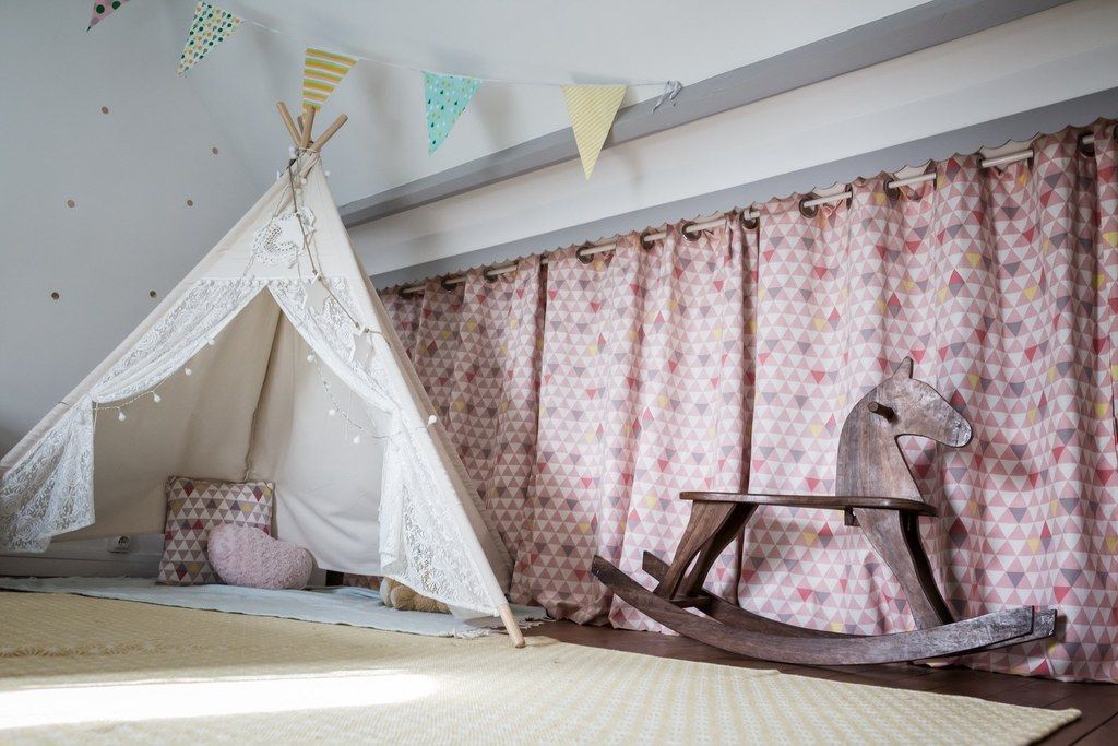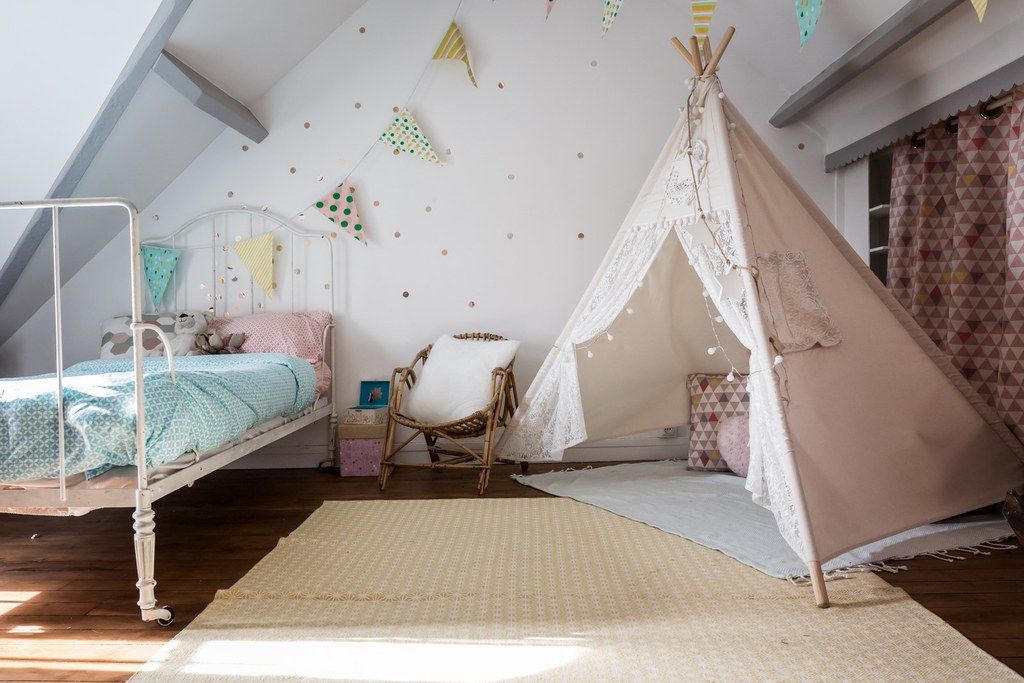 Douce, féminine, cette chambre est propice aux doux rêves et à l’amusement.
