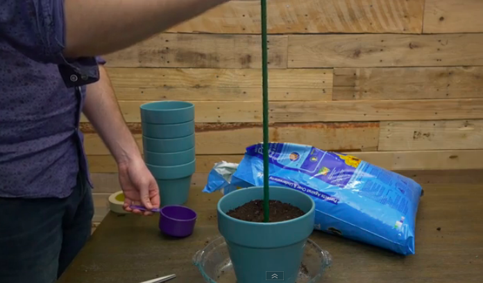 Il plante une grande tige dans un pot et crée une jardinière originale !