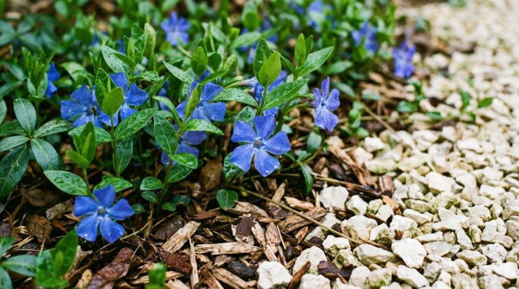 Le duo gagnant : paillage et pervenche pour dire stop aux mauvaises herbes