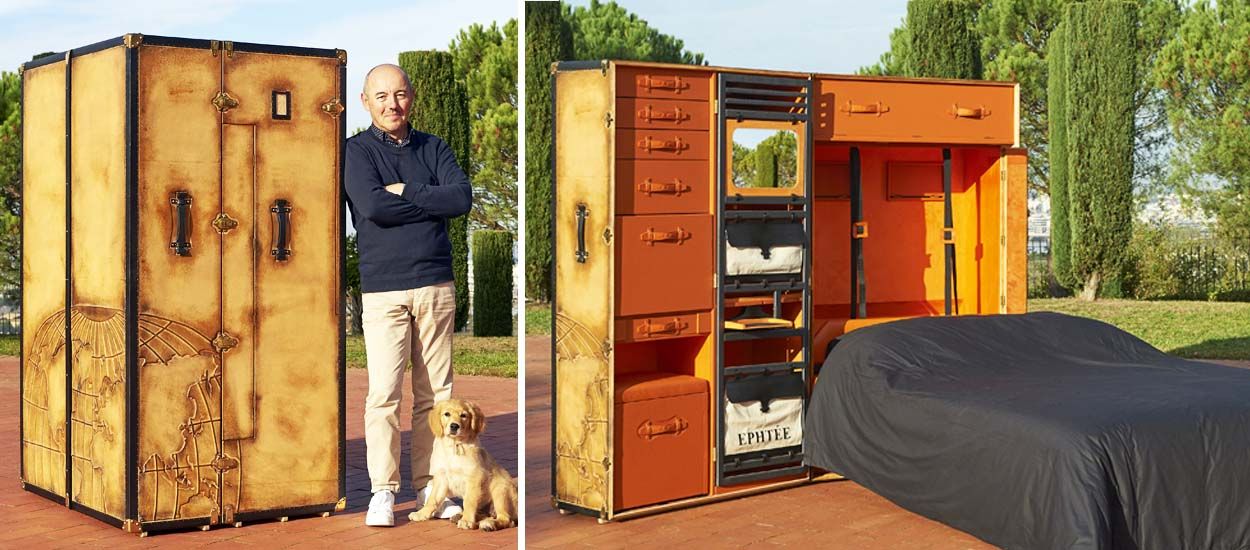 Sa passion pour les malles l’a ainsi mené vers ce concept de malle studio. Les nomades seront ravis de cette création. Un matelas haut de gamme pour deux personnes, un dressing, des lumières et tout un tas de rangements sont présents dans cette grosse boîte. De plus, la qualité est présente. Les matériaux utilisés sont du bois, du fer et du cuir provenant de France et d’Italie.