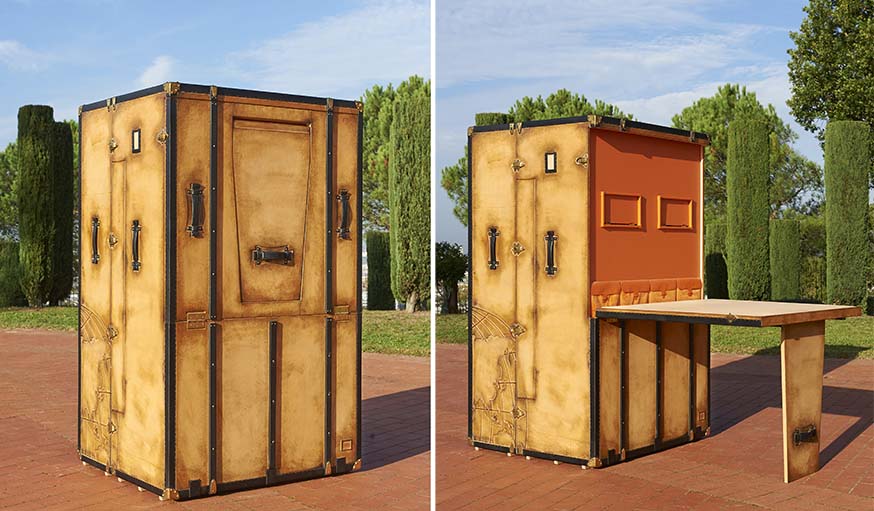 Puis, cette histoire de malles a pris de l’ampleur. Franck Tressens a commencé à voir les choses en grand. Il développa des malles pour ranger un dressing ou encore un bureau et enfin, sa dernière création : la malle studio.