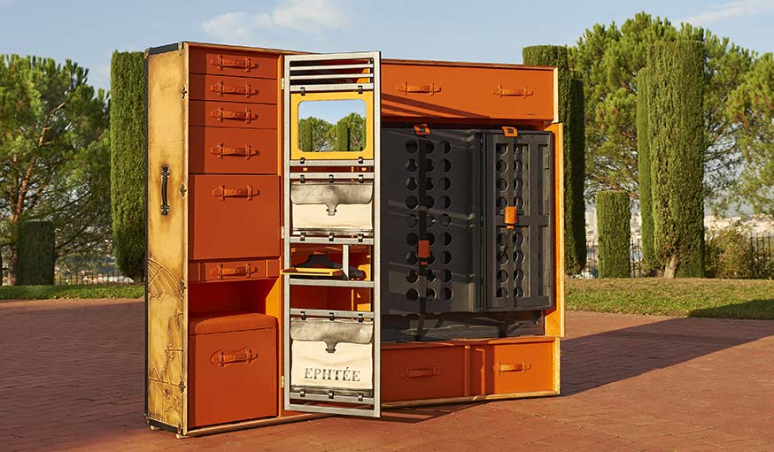 Tout a démarré par une histoire de chaussures, il y a 20 ans de cela. Franck Tressens est un passionné de souliers et il aimait particulièrement dessiner des boîtes pour les ranger. Après le dessin vint la fabrication de celles-ci et elles eurent un franc succès auprès de chausseurs de grandes marques. Les commandes se développèrent et ont fini par le mener à la tête d’une petite entreprise bordelaise, Ephtée, désormais spécialisée dans la fabrication de malles de tous types. Ils rangent ainsi les chaussures, mais également les montres. Chaque objet a une malle appropriée.