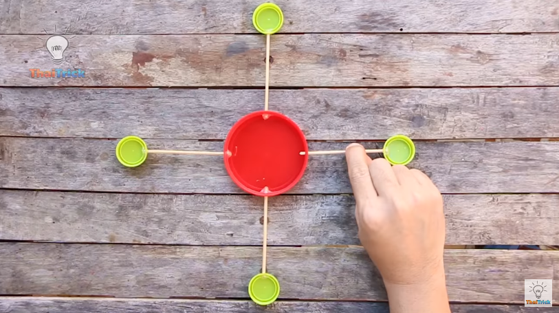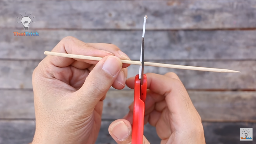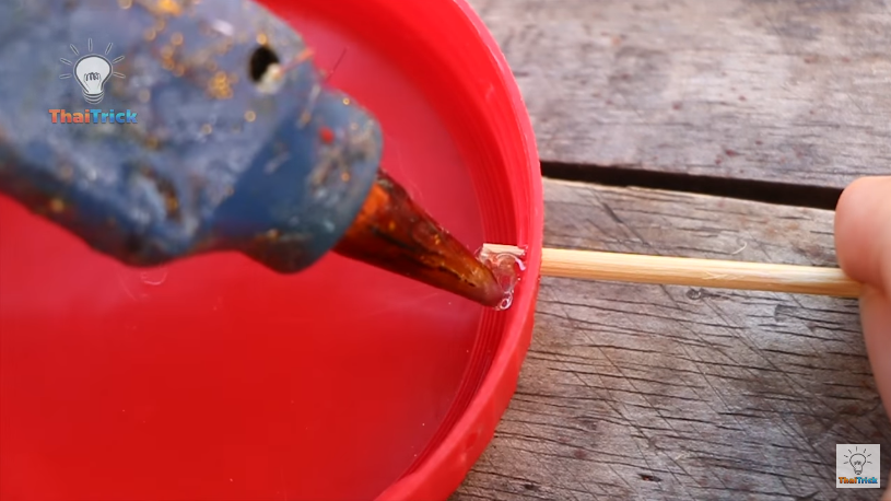 Insérez une baguette en bois et fixez-la avec le pistolet à colle.