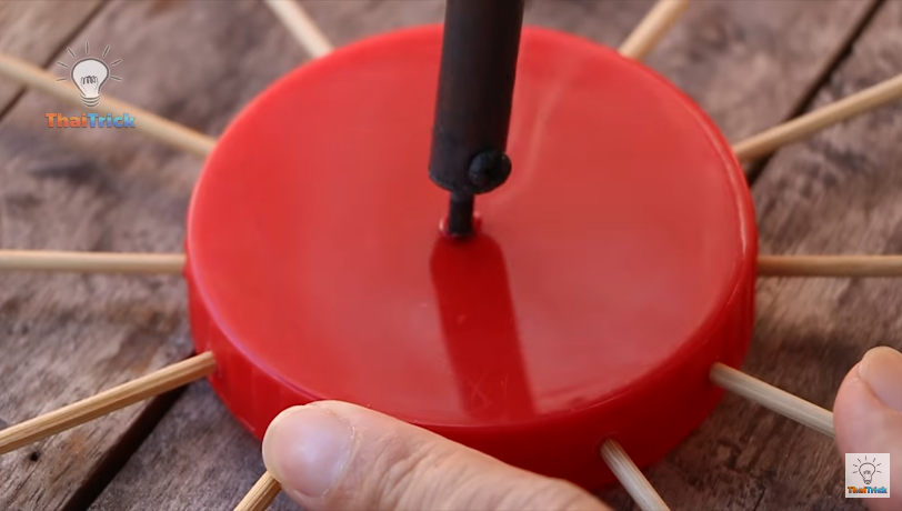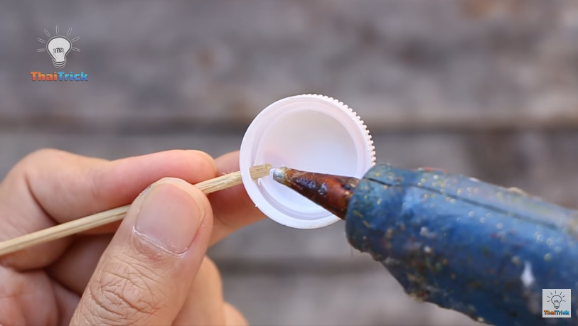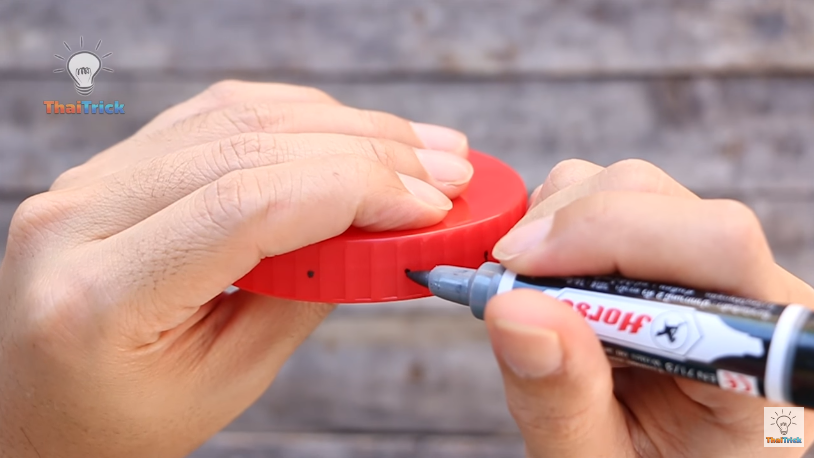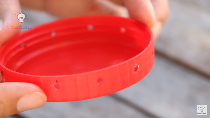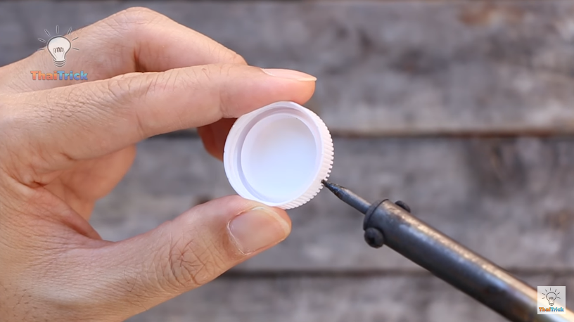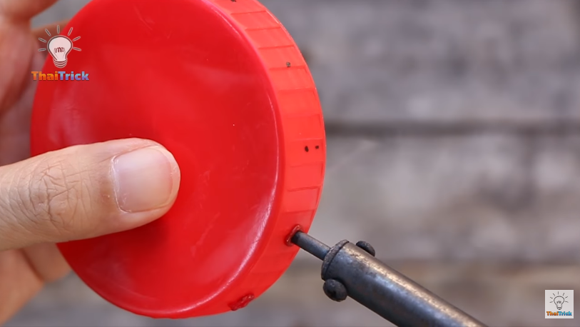5) Enfin, percez le couvercle en plastique en faisant un plus gros trou.