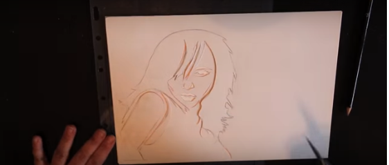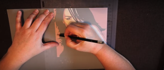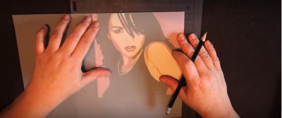 3/ Prenez votre feuille cartonnée et posez-y le recto de la feuille de calque dessus. Repassez sur les traits de votre dessin pour qu’il se transfert sur ce qui va être votre pochoir.