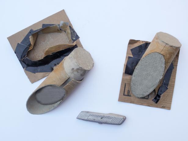 11) Lorsque le béton est sec, retirez les moules en carton à l’aide d’un cutter (en réalisant délicatement une fente).