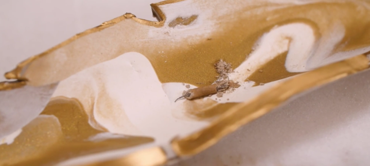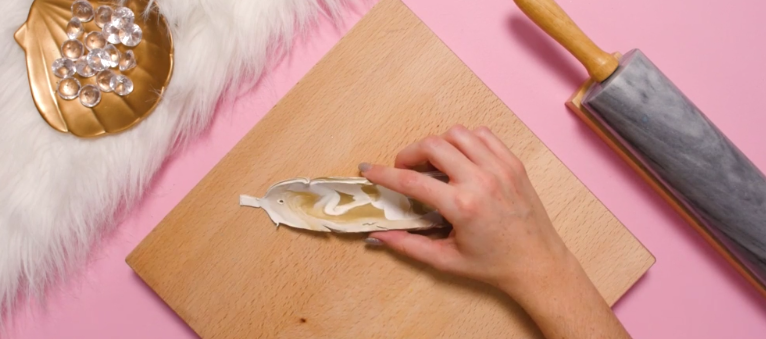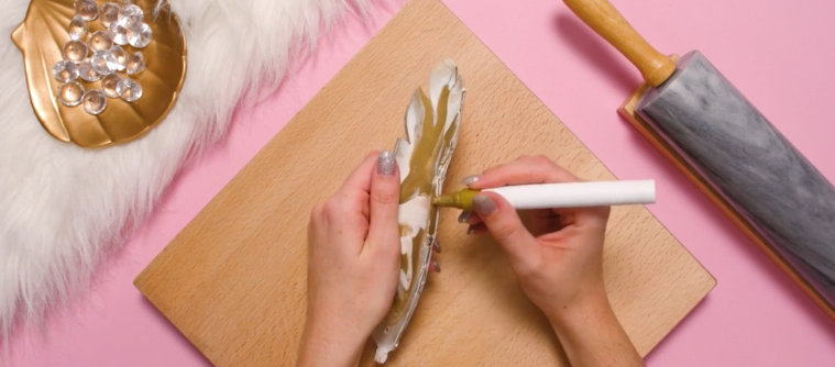 9. Maintenant que la pâte est cuite, prenez le crayon doré, coloriez les bords de manière à obtenir un encadrement doré.