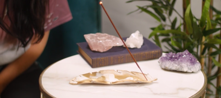 7. Courbez la plume obtenue avec les mains, de manière à obtenir un porte-encens légèrement cylindrique.
