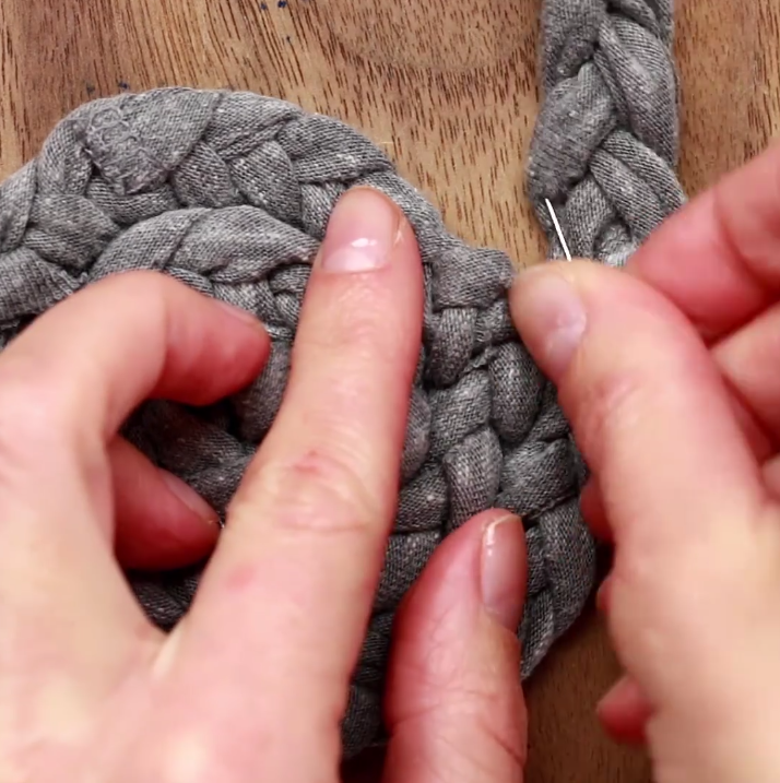9/Torsadez la tresse et faites des points de couture entre chaque épaisseur afin de les faire tenir en place.