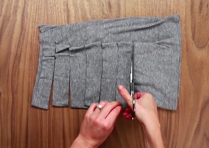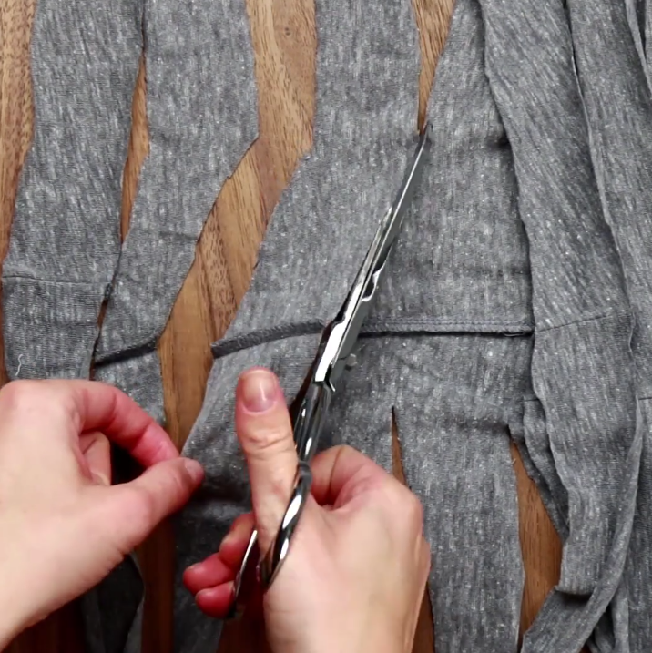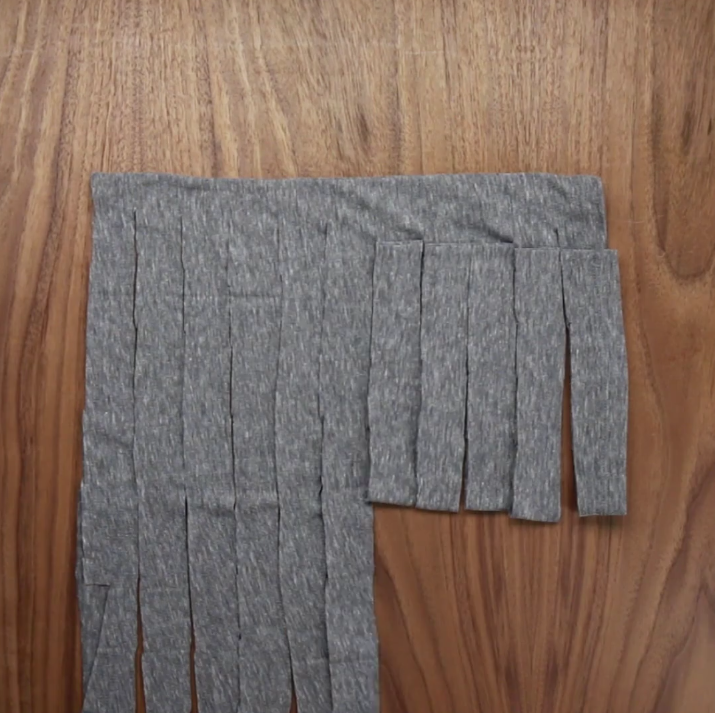 6/Coupez alors les lanières en angle afin d’avoir un long fil.