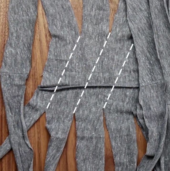 6/Coupez alors les lanières en angle afin d’avoir un long fil.