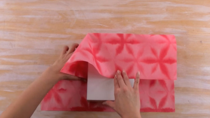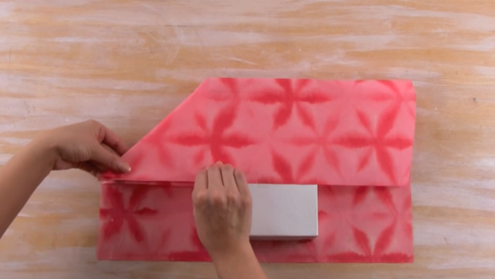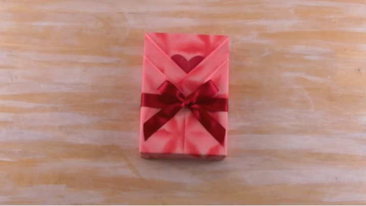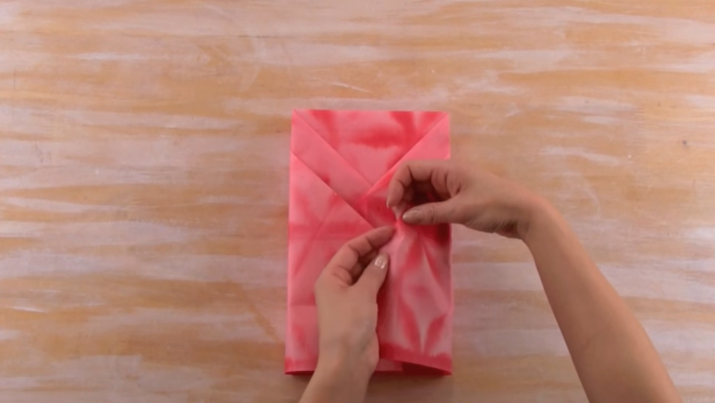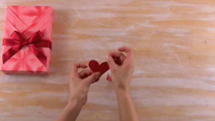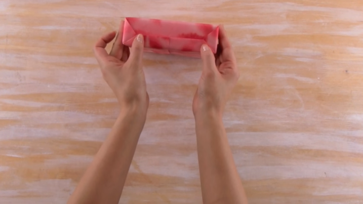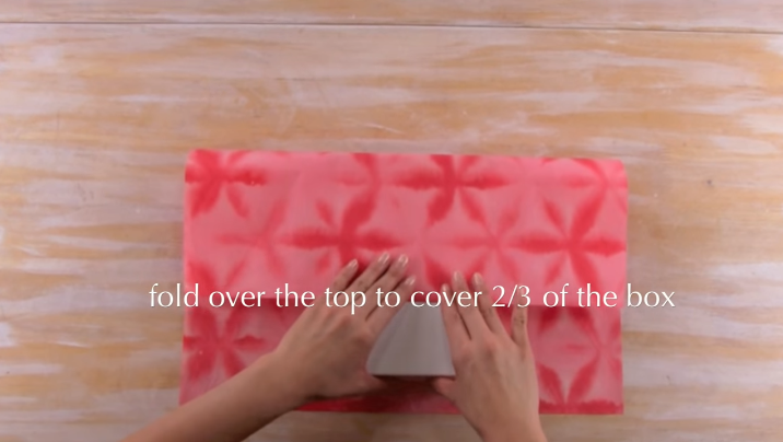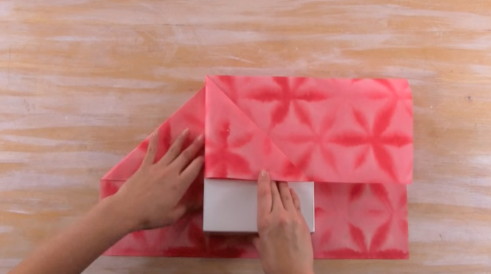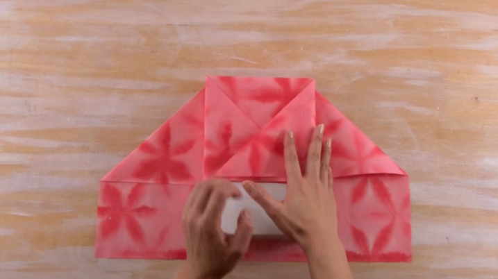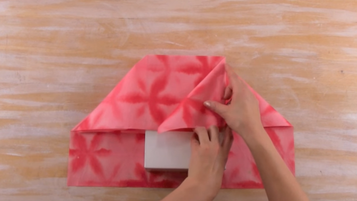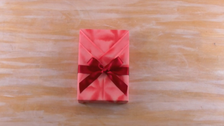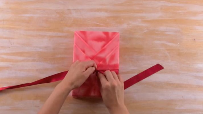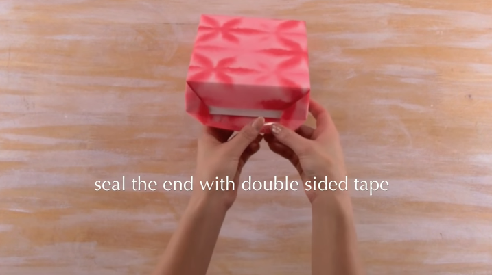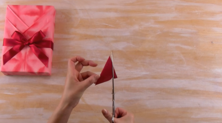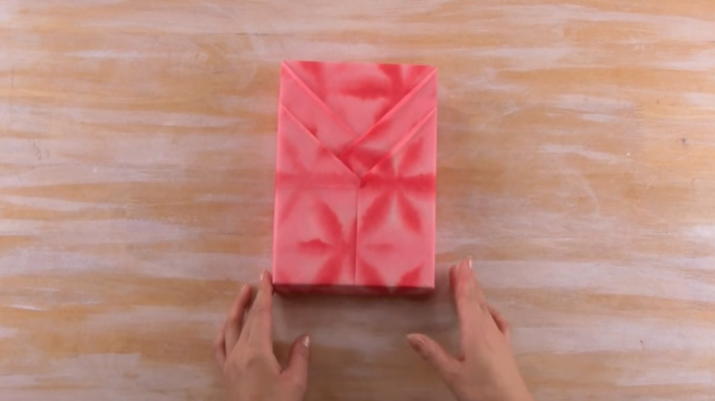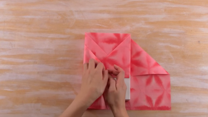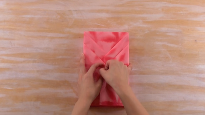 4/Repliez les deux « triangles » vers l’intérieur du cadeau.