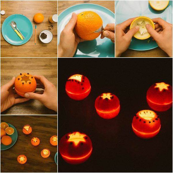 1/ Coupez votre orange en deux et videz-la en réalisant en jus. L’intérieur peut aussi servir pour une salade de fruit.