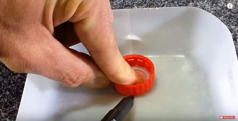 3/Placez le bouchon de la bouteille au centre du bidon et tracez sa forme au marqueur.