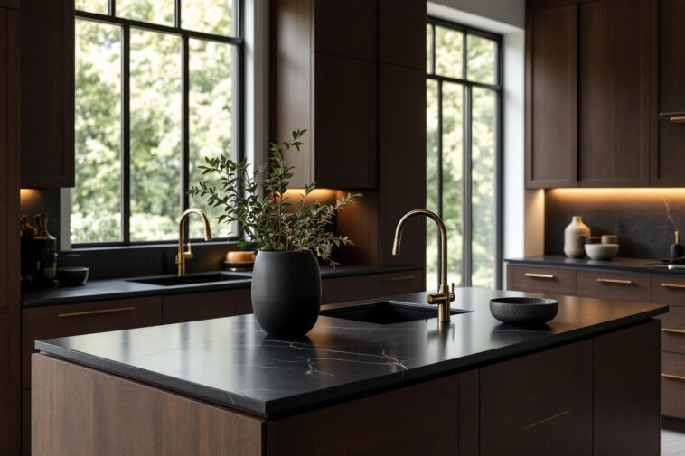 Fini les cuisines blanches : textures et nuances foncées redéfinissent le luxe en cuisine