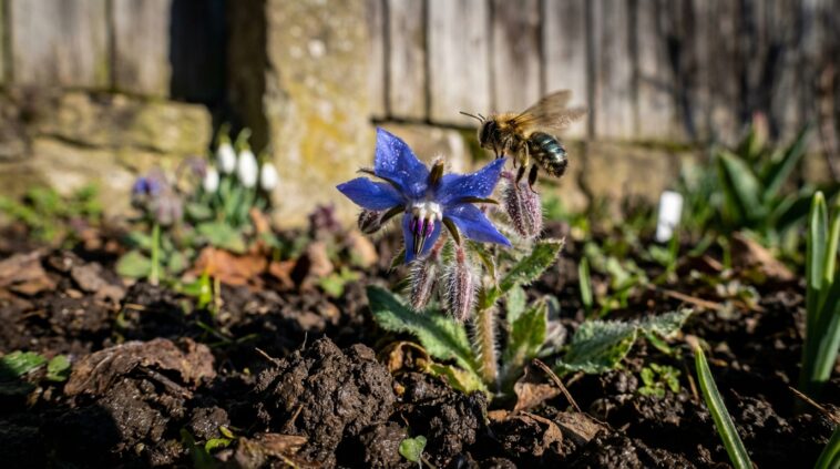 Le grand atout de cette merveille florale réside dans sa capacité fascinante à séduire les travailleurs ailés. Ses étoiles bleues regorgent d’un nectar particulièrement riche qui agit comme un puissant aimant naturel. Les abeilles, les bourdons et les syrphes viennent s’y ravitailler en grand nombre, assurant par la même occasion la pollinisation croisée des légumes et des fruitiers voisins. C’est l’astuce imparable pour cultiver un lopin de terre prospère et sain, en reléguant définitivement les pesticides et autres produits chimiques toxiques aux oubliettes.