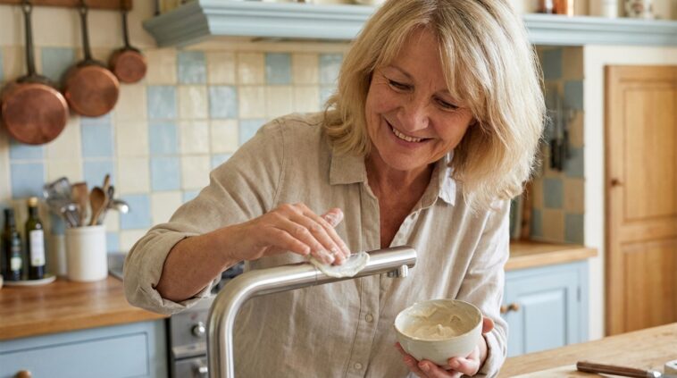 La préparation est d’une simplicité enfantine, mais requiert un mélange homogène pour être pleinement efficace lors de l’utilisation future. Dans un saladier, on commence par mélanger intimement l’argile blanche et le bicarbonate de soude afin de bien répartir les poudres, avant d’incorporer progressivement le savon noir liquide et l’huile essentielle. L’objectif est d’obtenir une pâte lisse, dense et uniforme, semblable à une pâte à modeler un peu souple, qu’il faut ensuite tasser soigneusement dans le pot définitif. L’étape cruciale, trop souvent négligée, reste le temps de repos : il est impératif de laisser sécher la préparation à l’air libre, pot grand ouvert, pendant 48 heures minimum. Cette phase permet à l’eau contenue dans le savon de s’évaporer, transformant la pâte en un bloc dur comme de la pierre. C’est cette solidification qui permettra ensuite de prélever la juste dose de produit sans gaspillage, en frottant simplement une éponge humide à la surface pour créer une mousse fine et onctueuse prête à attaquer la saleté.