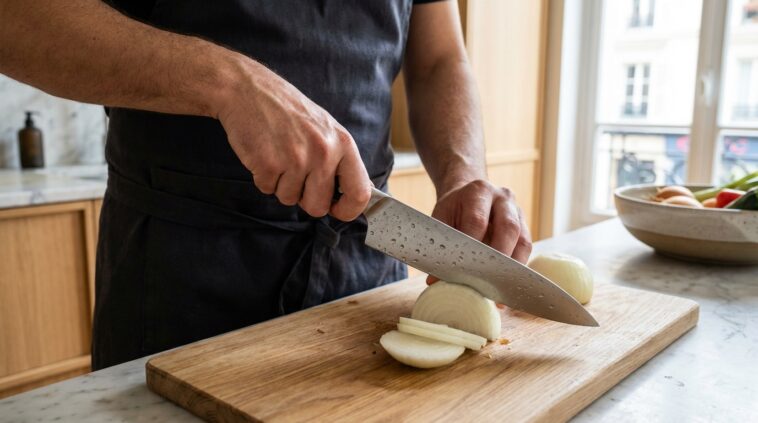 Pour une découpe vraiment sereine, la combinaison du froid et d’un couteau parfaitement aiguisé fait des merveilles. Un couteau émoussé écrase l’oignon au lieu de le trancher, entraînant la libération accrue des gaz irritants. À l’opposé, une lame bien affûtée et refroidie, associée à un oignon passé au froid, permet une découpe exempte de larmes, rapide et nette.