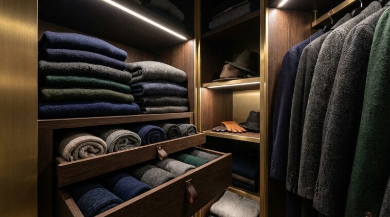 Enfin, pour atteindre ce niveau de sérénité visuelle que l’on recherche tous en rentrant chez soi, l’uniformité est la clé. Dans un petit espace ouvert ou semi-ouvert, le désordre visuel fatigue l’œil. Investissez dans un lot de cintres identiques en bois ou en velours pour un côté plus chic et antidérapant, et bannissez les cintres dépareillés du pressing. Utilisez des paniers en fibres naturelles ou des boîtes de rangement de la même couleur pour cacher les petits accessoires. Cette rigueur esthétique apaise l’esprit et donne instantanément cette sensation d’ordre et de sérénité, même si votre dressing n’est pas immense.
