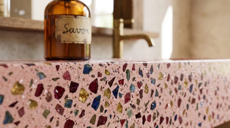 Quand le moucheté détrône l’uni : le retour en force du terrazzo pour casser les codes de la salle de bain