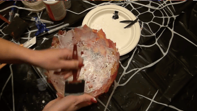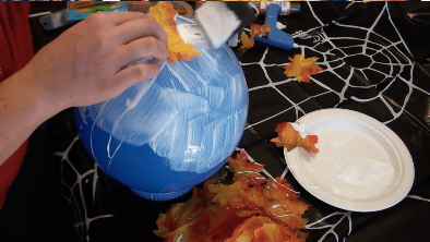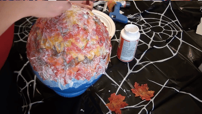 4. Patientez au moins 2h le temps que la colle sèche, puis faites éclater le ballon à l’aide d’un cure-dent ou d’un couteau. Vous voilà avec un superbe bol de feuilles d’automne ! À ce stade, il est normal qu’il soit assez malléable, mais l’étape suivante devrait permettre de le rigidifier un peu.