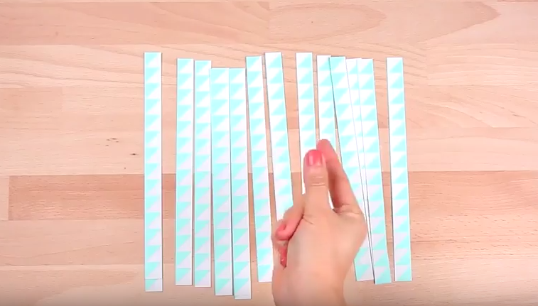 1) Prenez une feuille de papier cartonné et découpez-le en lamelles de même taille.