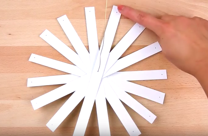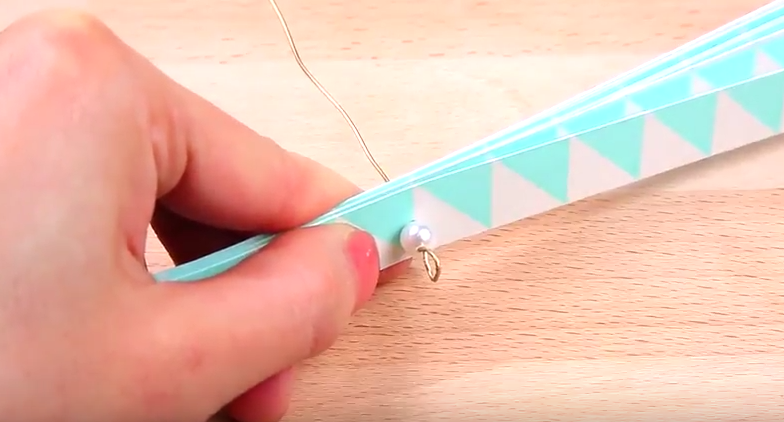 4) Faites passer le fil de fer au centre des lamelles percées.