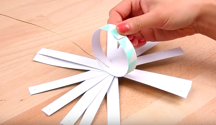 6) Maintenant, enfilez-les une par une sur le fil de fer de façon à former une boule.
