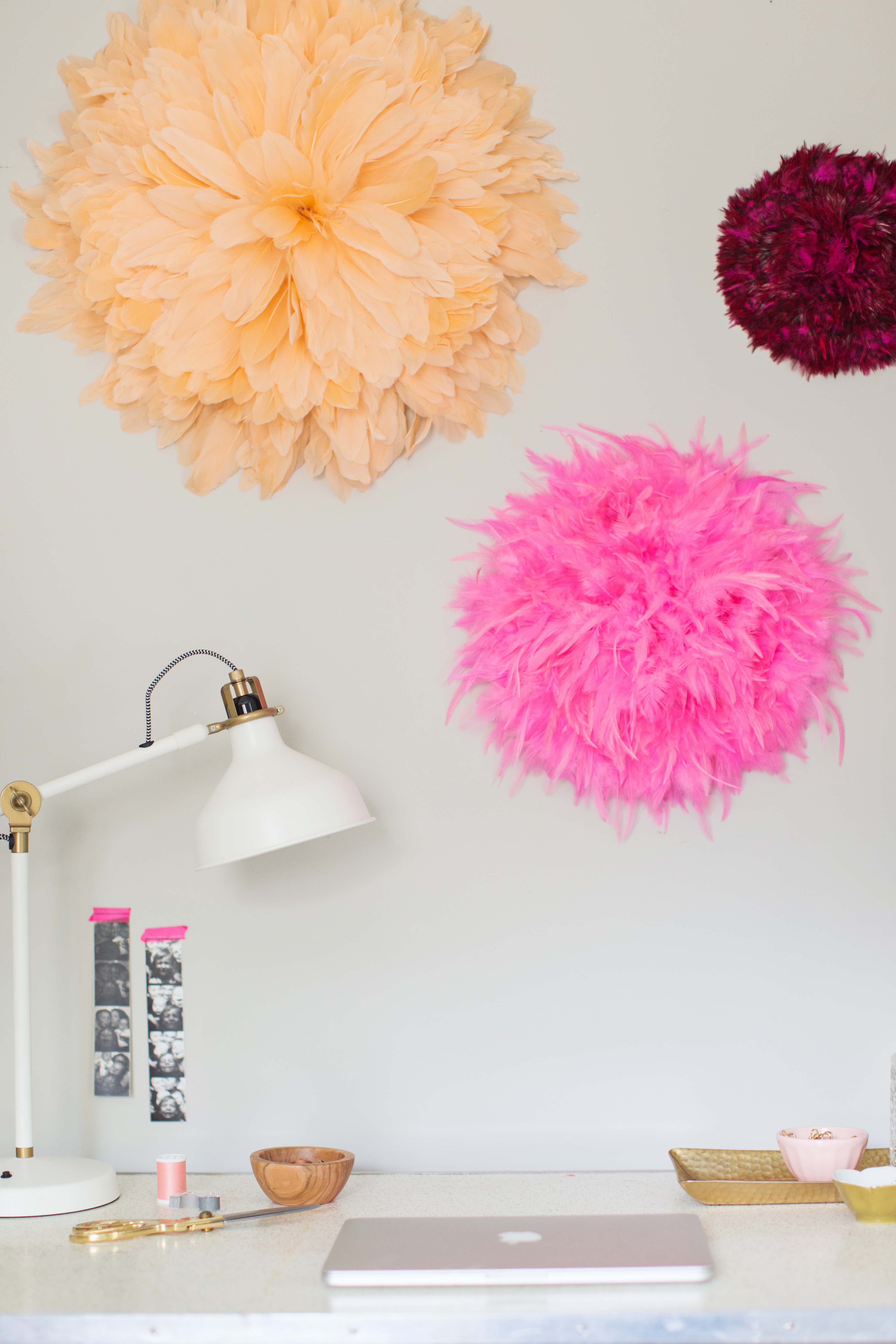 S’il vous reste encore des plumes, envisagez de créer un deuxième Juju Hat, plus petit. Placez-le en décalé, à côté du premier, le rendu est top !