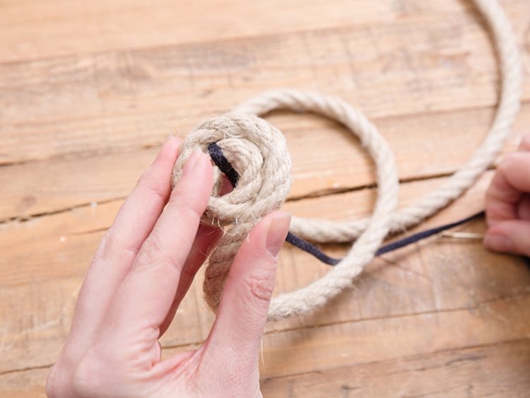 3) Roulez la corde comme pour former un escargot, donc sur elle-même, à partir de cette extrémité et sur deux tours.