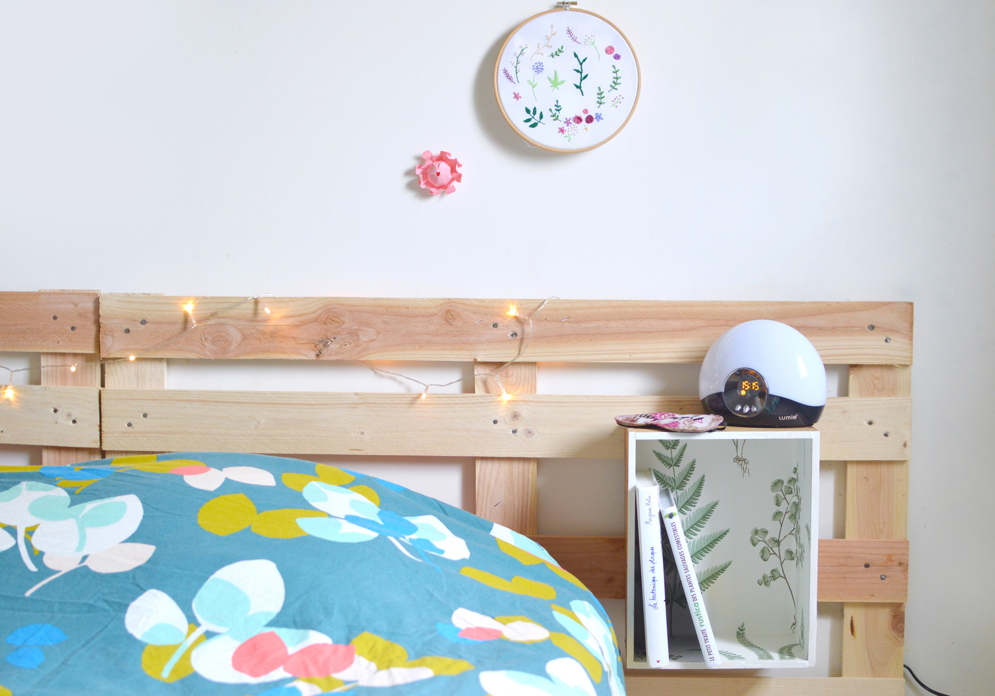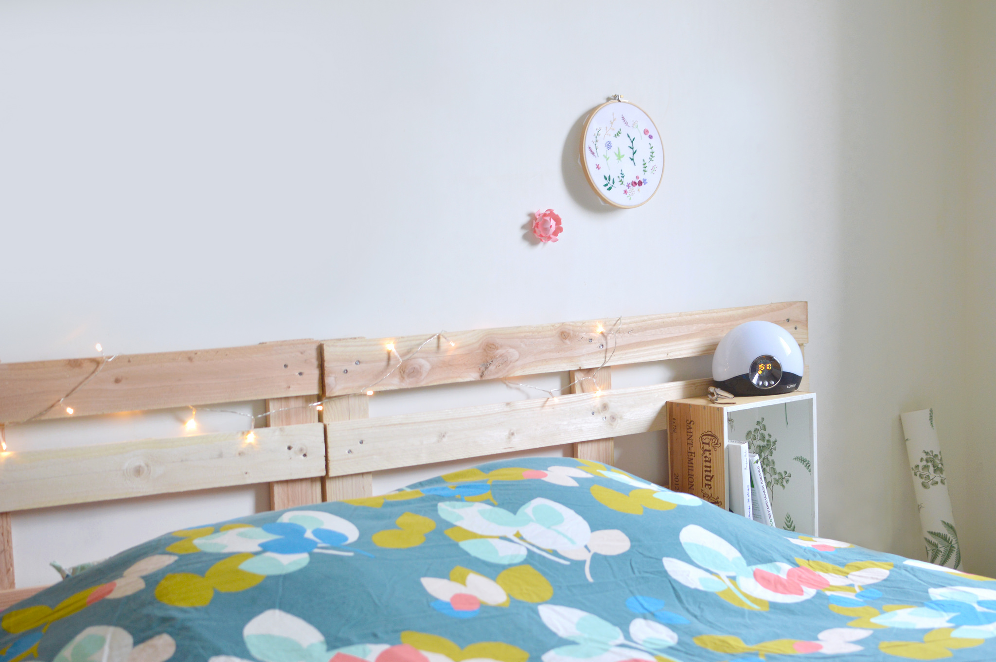 Plusieurs façons de customiser cette tête de lit s’offrent à vous, avec un peu de peinture ou du papier peint. Aussi, n’hésitez pas à personnaliser cette création en y ajoutant une belle guirlande lumineuse !