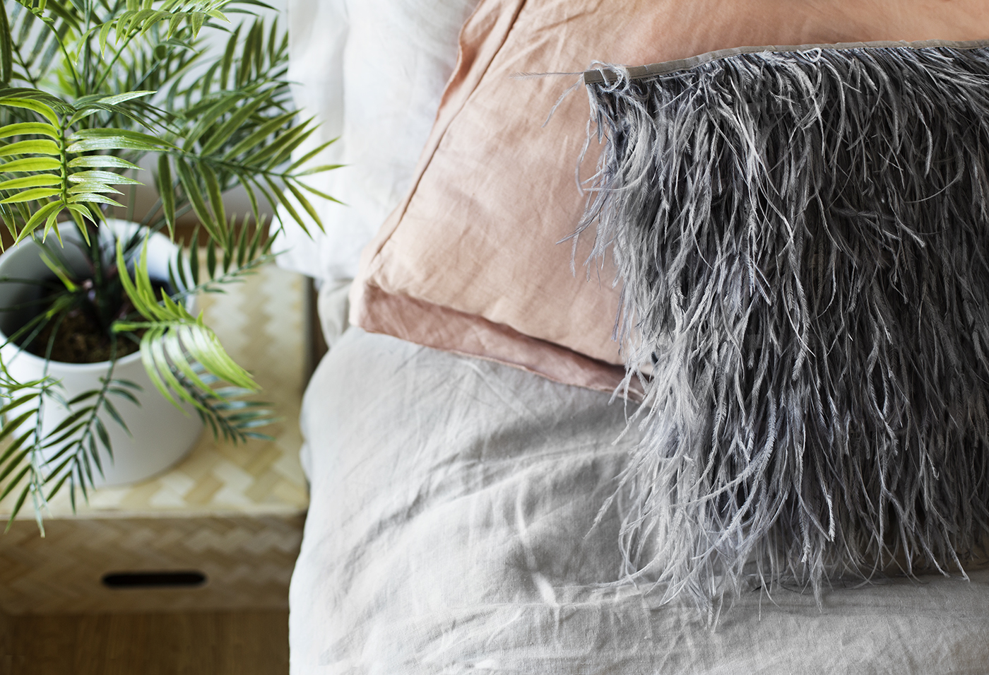 - 1 housse de coussin basique (idéalement, dans les mêmes tons que vos plumes)