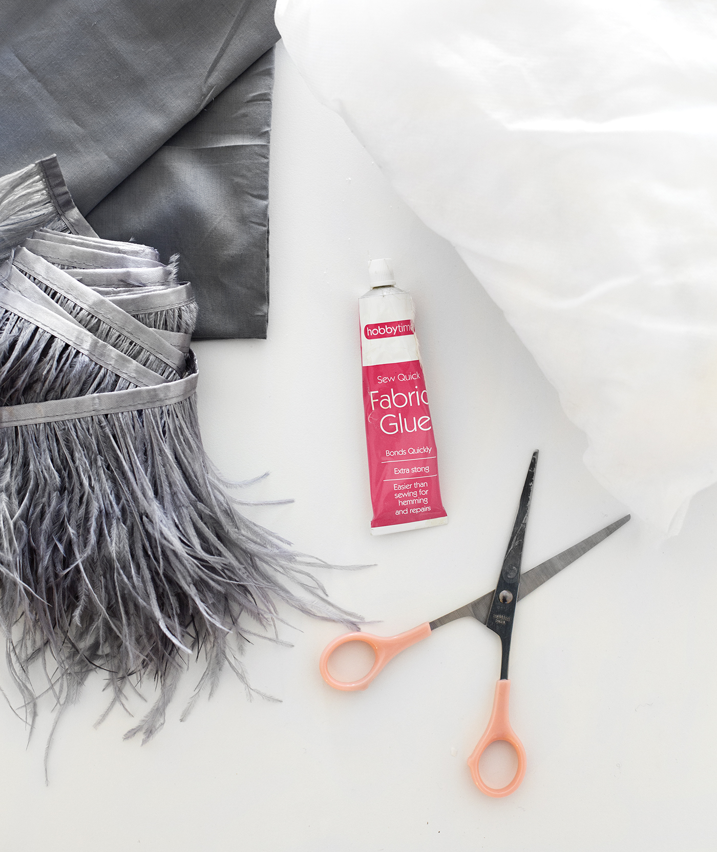 - 4,5 mètres de plumes en ruban de la couleur de votre choix