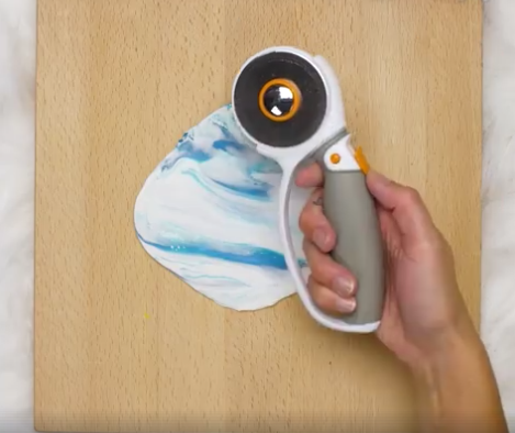 - deux carrés de pâte polymère (un blanc et l’autre de la couleur de votre choix, ici bleu)
