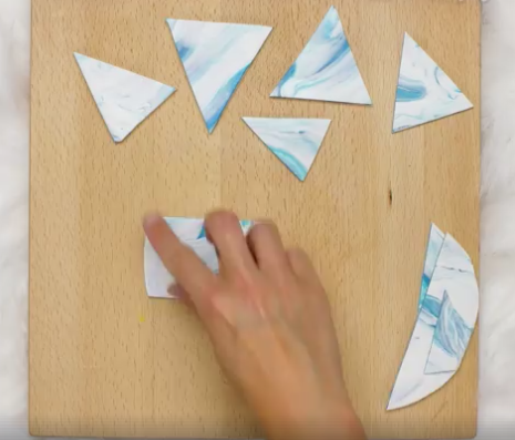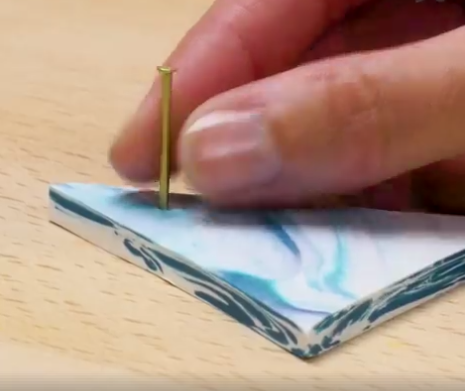 4) Plantez maintenant un clou dans un coin des triangles, à 1 centimètre du bord, formez ce trou dans chacune des formes créées en faisant bien attention à ce que le clou traverse l’épaisseur de la pâte. Ensuite, retirez-le.