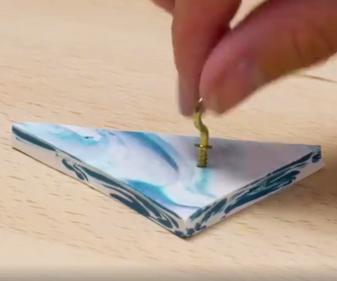 5) Puis, formez le trou pour le crochet en le vissant soigneusement au centre des formes créées. Chose faite, enlevez délicatement le crochet.