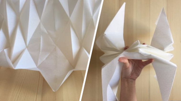 Vous rêvez d’une suspension originale et « homemade » ? Lancez-vous dans la conception d’un abat-jour en origami ! Certes, il vous faudra un peu de patience et de dextérité, mais le jeu en vaut la chandelle. Si en plus vous êtes un(e) habitué(e) des pliages, n’hésitez pas plus longtemps, vous allez vous amuser à la créer !