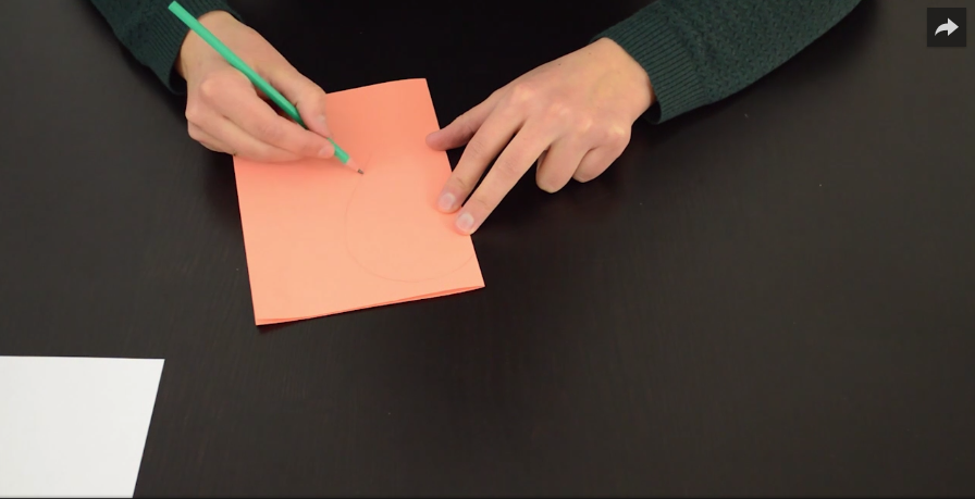 1/Pliez le papier coloré en deux et tracez un demi-cœur à l’extrémité du pliage.