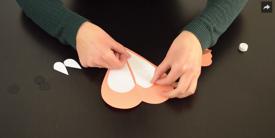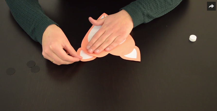 Et collez le tout en haut du grand cœur afin de former les oreilles du renard.