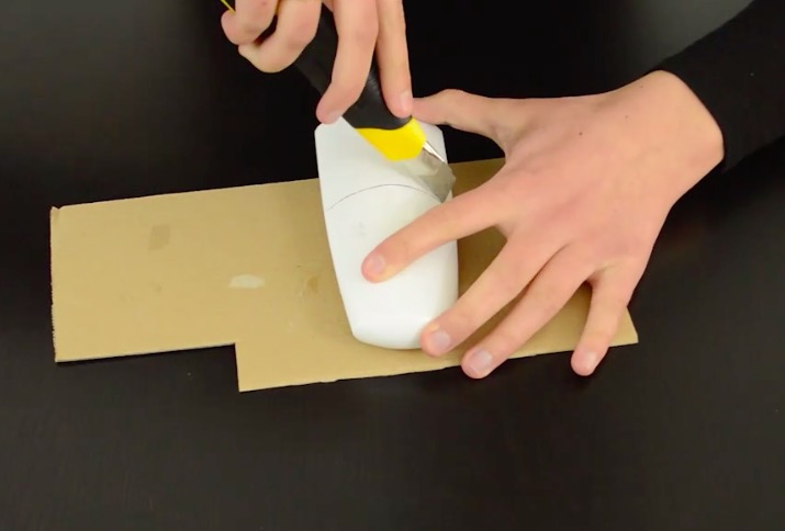 1/Découpez le haut du flacon, à hauteur de la moitié. Vous pouvez vous aider en dessinant des repères au stylo noir.