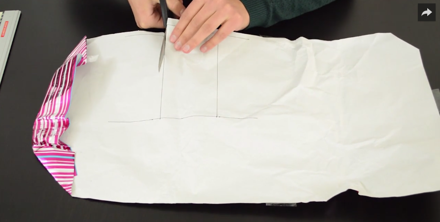1/ Découpez une bande de papier cadeau de 9 cm de largeur sur 18 cm de longueur.