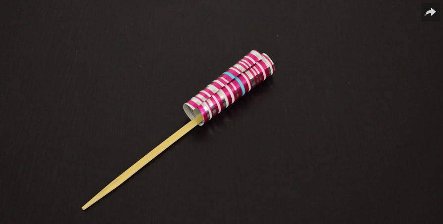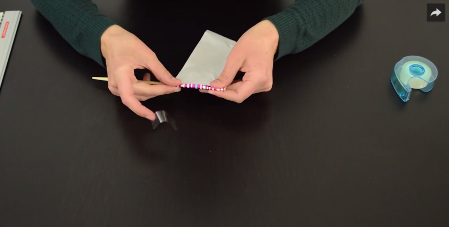2/ Avec du ruban adhésif, collez le papier cadeau à la base de la baguette.