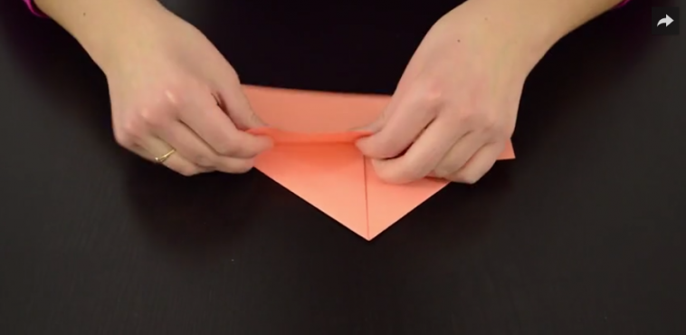 2/ Pliez le côté droit en amenant le sommet vers le milieu du papier. Faites la même chose pour le côté gauche.