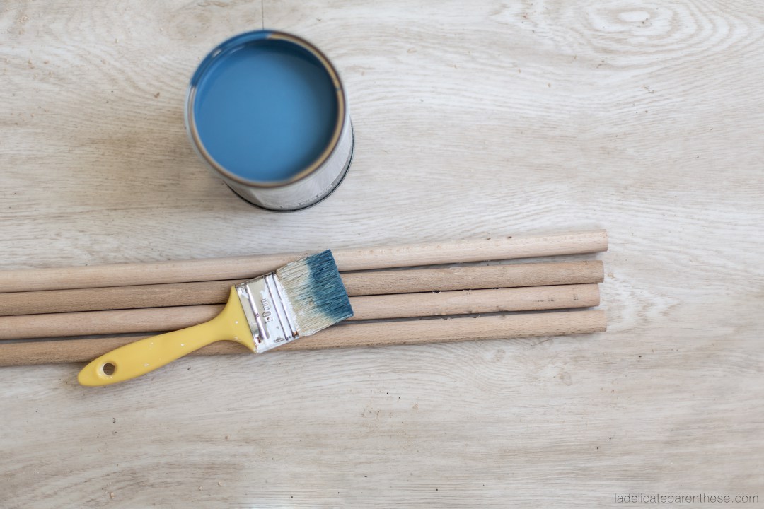 9. C’est le moment de peindre les tourillons selon vos préférences. Ici, la peinture a été posée de façon à créer un dégradé. Pour cela, il vous suffit de démarrer une extrémité et d’étirer la peinture avec un peu d’eau.