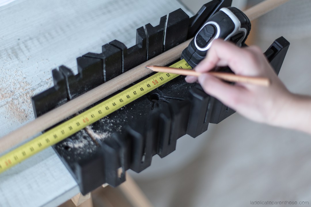 7. Prenez vos tourillons et sciez-les de sorte qu’ils fassent 52 centimètres de long.
