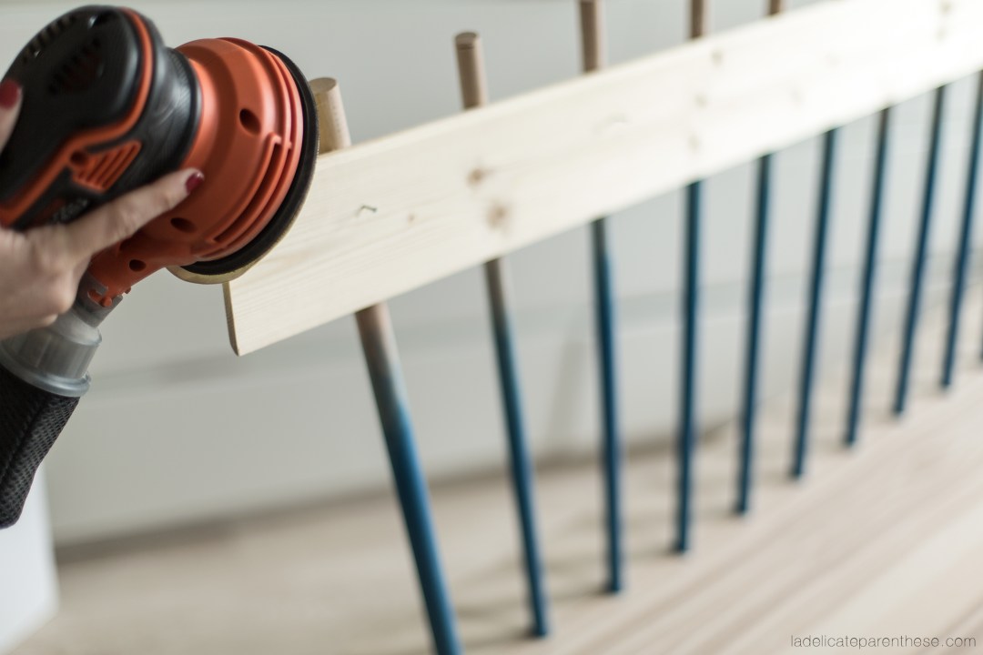 12. Reprenez le papier de verre (ou une ponceuse) et poncez les angles du dossier afin qu’ils soient relativement arrondis.
